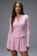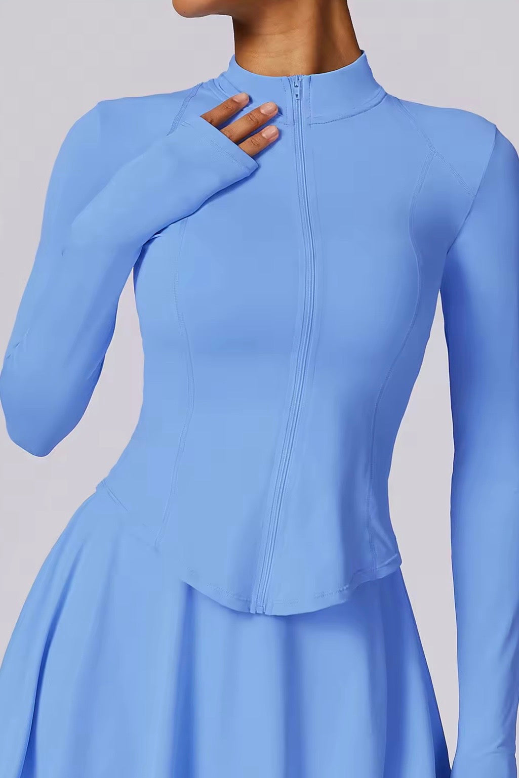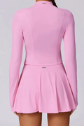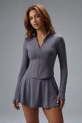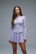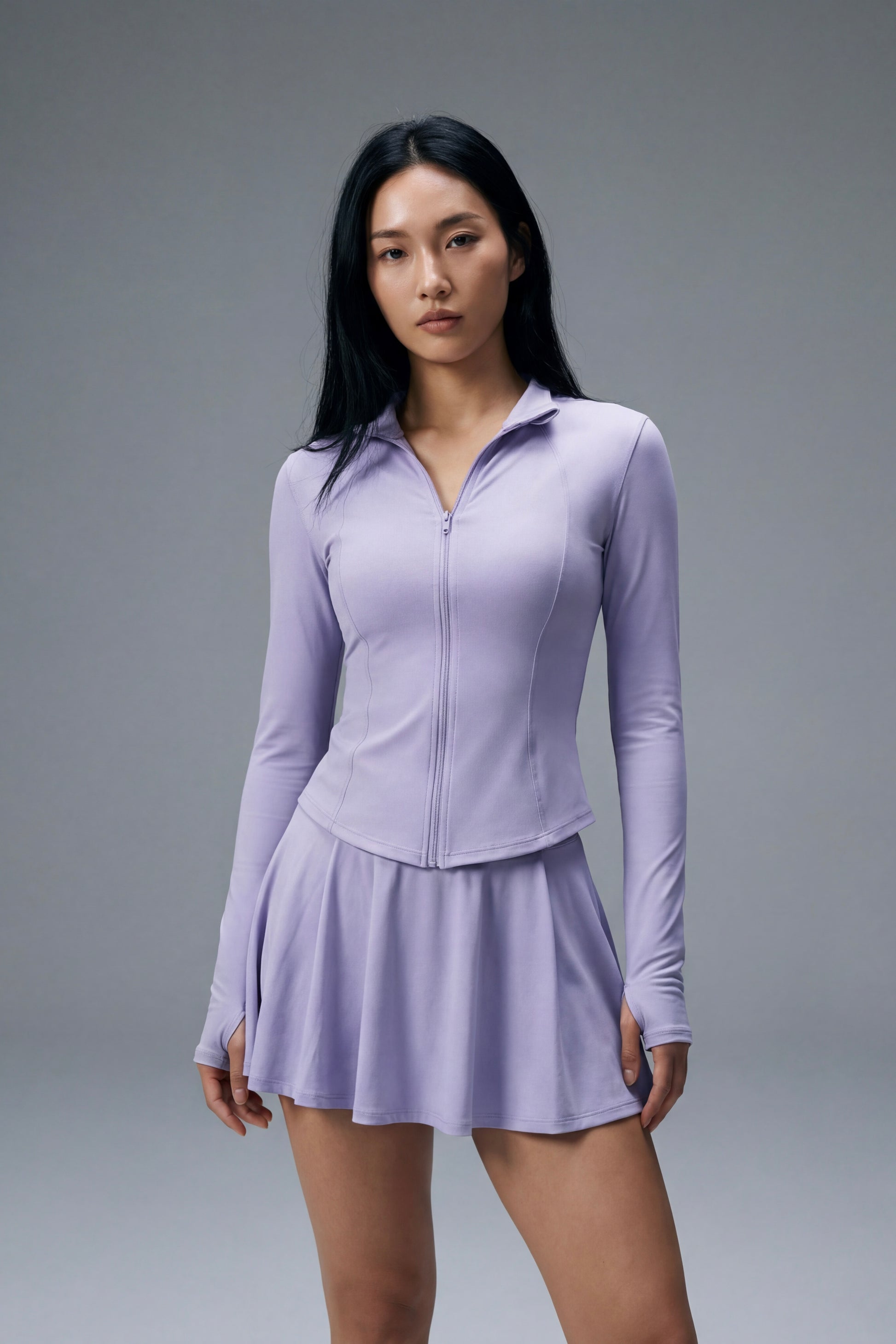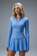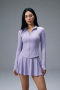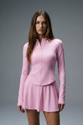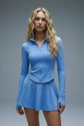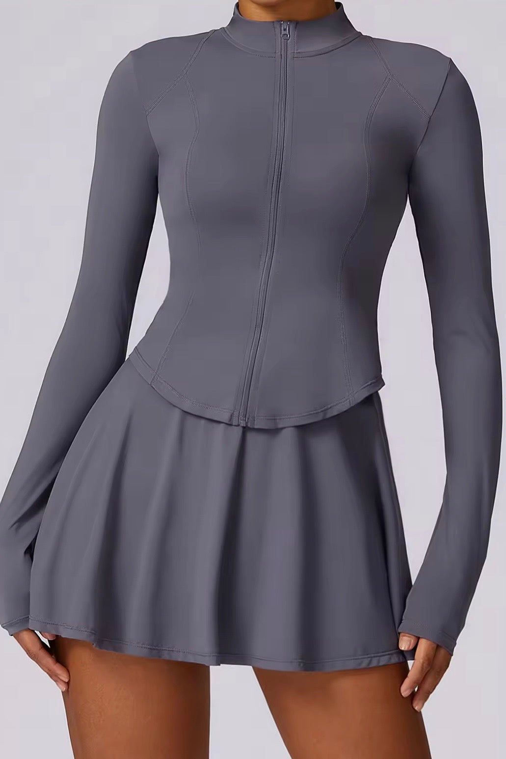 The Vyra Set is defined by movement and structure in perfect balance. The fitted upper silhouette shapes the body with clean lines, while the softly flowing skirt creates lightness with every step. Designed to feel effortless yet intentional, it blends sport-inspired precision with feminine elegance.