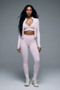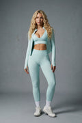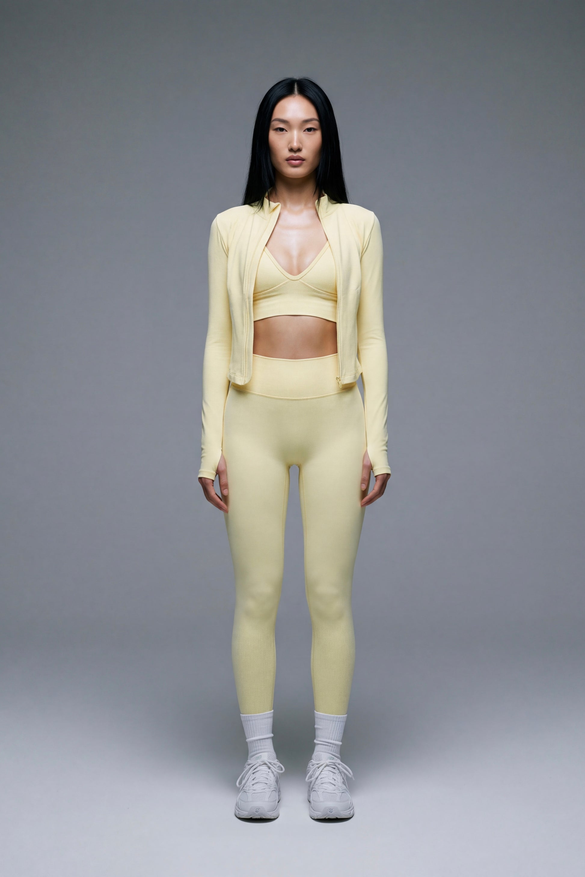 Designed to flow with confidence and softness. The Ame Long combines a sculpting legging with a fitted top and lightweight zip jacket, creating a balanced silhouette that feels refined yet effortless.