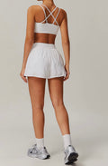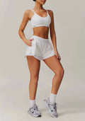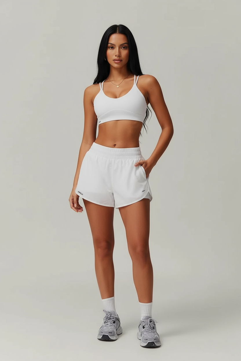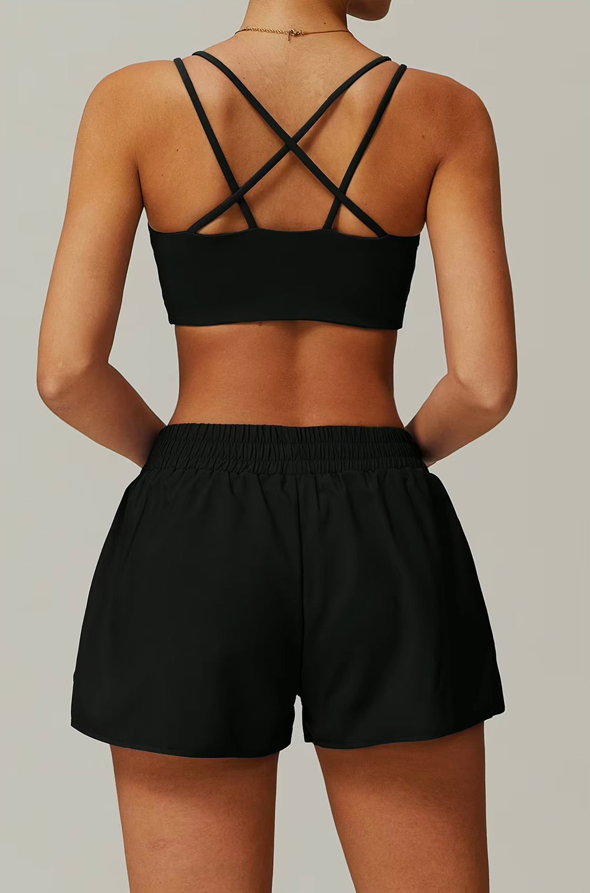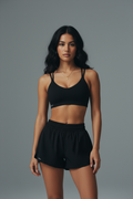 The double-strap sports bra offers light to medium support with a flattering fit, while the lightweight high-waist shorts give you total freedom of movement thanks to their relaxed cut and breathable fabric. Minimalist, functional, and effortlessly chic – perfect for workouts, summer days, or casual streetwear styling.